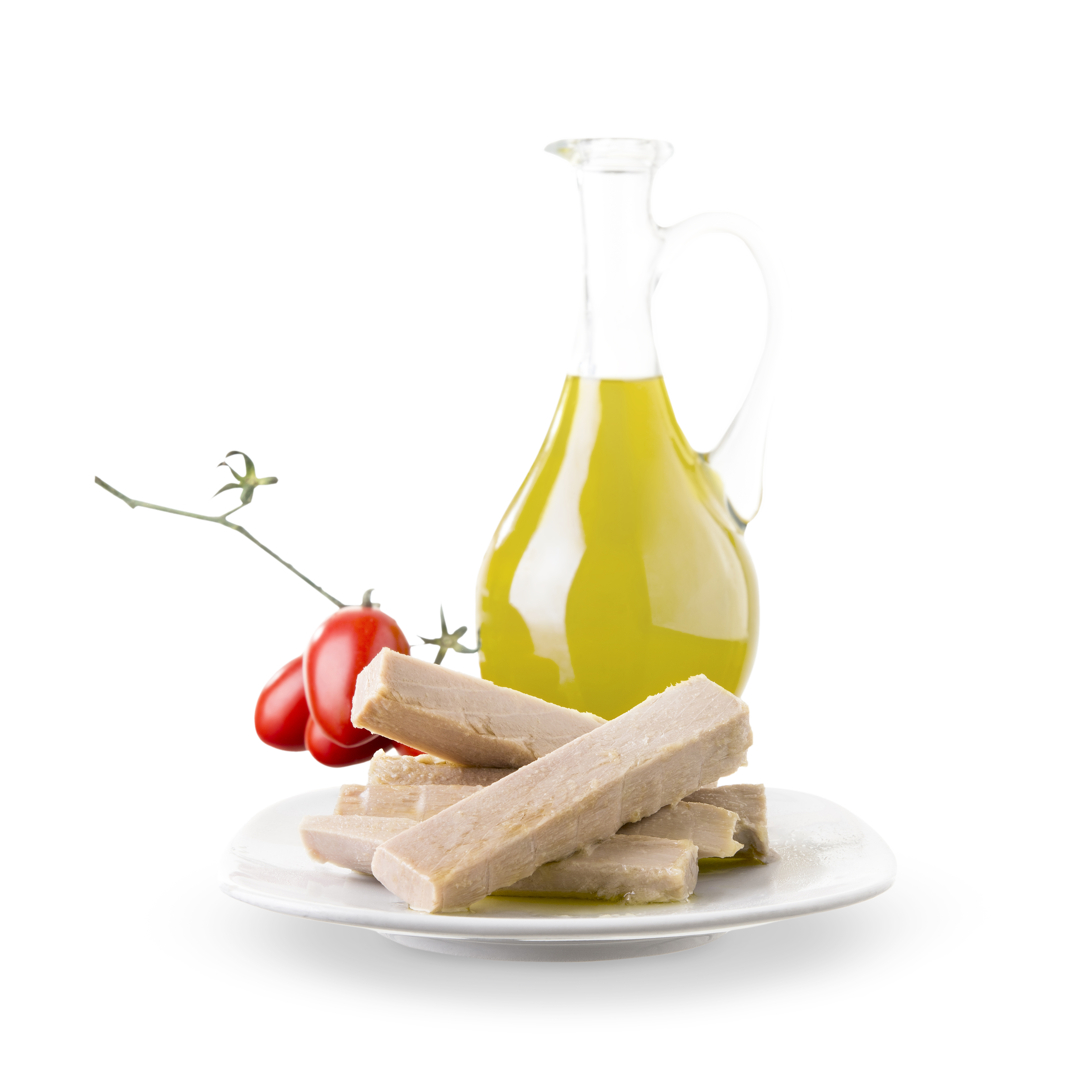 I filetti di Tonno Bianco (Alalunga) all’olio extravergine di oliva provengono da tonni pescati nel Mar Mediterraneo. Il Tonno bianco è adatto a palati che prediligono gusti delicati e sapori morbidi. Le sue carni presentano un colore chiaro ed un minor contenuto di sostanze grasse, che rendono questo tonno ingrediente ideale alla preparazione di fantasiosi antipasti e di preparazioni gastronomiche delicate, accompagnando i diversi ingredienti senza mascherarne i sapori.