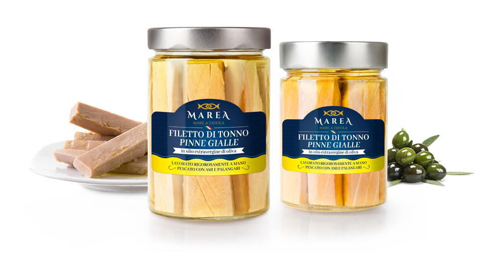 Filetti di Tonno Pinne Gialle all’olio extravergine di oliva si presentano con un colore rosato e con una compattezza delle carni superiore. Si possono apprezzare tal quale o come base per sughi e primi piatti ai quali conferisce toni caldi. Conditi esclusivamente con materie prime d’eccellenza, particolarmente leggeri perché contenente solo l’1% di grassi